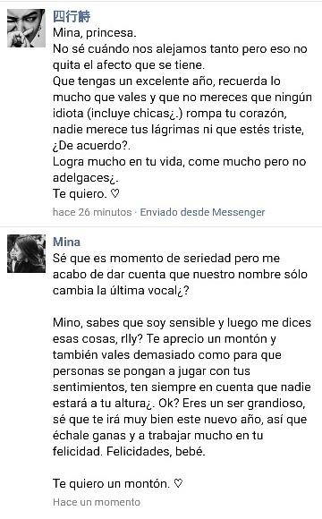 Esta parte resalta lo torpes que éramos al decirnos las cosas, al principio¿? Bc tímidos. En el primer SS, había otras indirectas pero lamentablemente solo me quedó Esa, ah. Peeo no sabía que era indirecta hasta que tú me dijiste, mucho después, porque creí que solos juagabas y reíamos de cosas tontas¿? Pues rara vez conversamos más del "Hola, cosita hermosa, ¿cómo te ha ido?" Y pues pensaba que era normal u_u pero lo que no sabías es quw yo siempre quería hablar contigo y te buscaba de distintas formas pero la vida se encargaba de hacerme fallar en el intento.