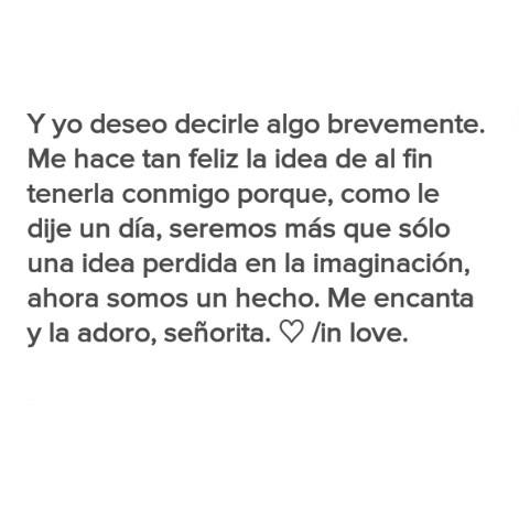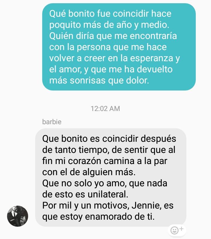 Me encantaba decirte cosas bonitas cuando las sentía, sabes que soy una persona muy sensible y que soy un desastre manejando las emociones; especialmente la felicidad, por eso siempre terminaba en lágrimas porque no encontraba otra forma de expresar todo lo que siento por ti. Debes saber que cada palabra, cada sticker, cada coma, cada punto¿? Era verdad. Es verdad. Te amo, te amo mucho, y al estar contigo me sentí como en un sueño del que nunca había querido despertar.