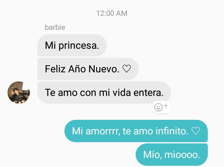 ¡Nuestro primer año nuevo juntos! si no mal recuerdo, teníamos como cinco o seis meses de conocernos, época en donde estábamos muy separaditos pero aún así te acordaste de mí y eso me hizo sentir especial. recuerdo que siempre te ibas porque enojón siempre:) por eso fue un mensaje inesperado pero uno de los mejores y más importantes a mis ojos. debes saber que sonreí mucha esa ocasión.